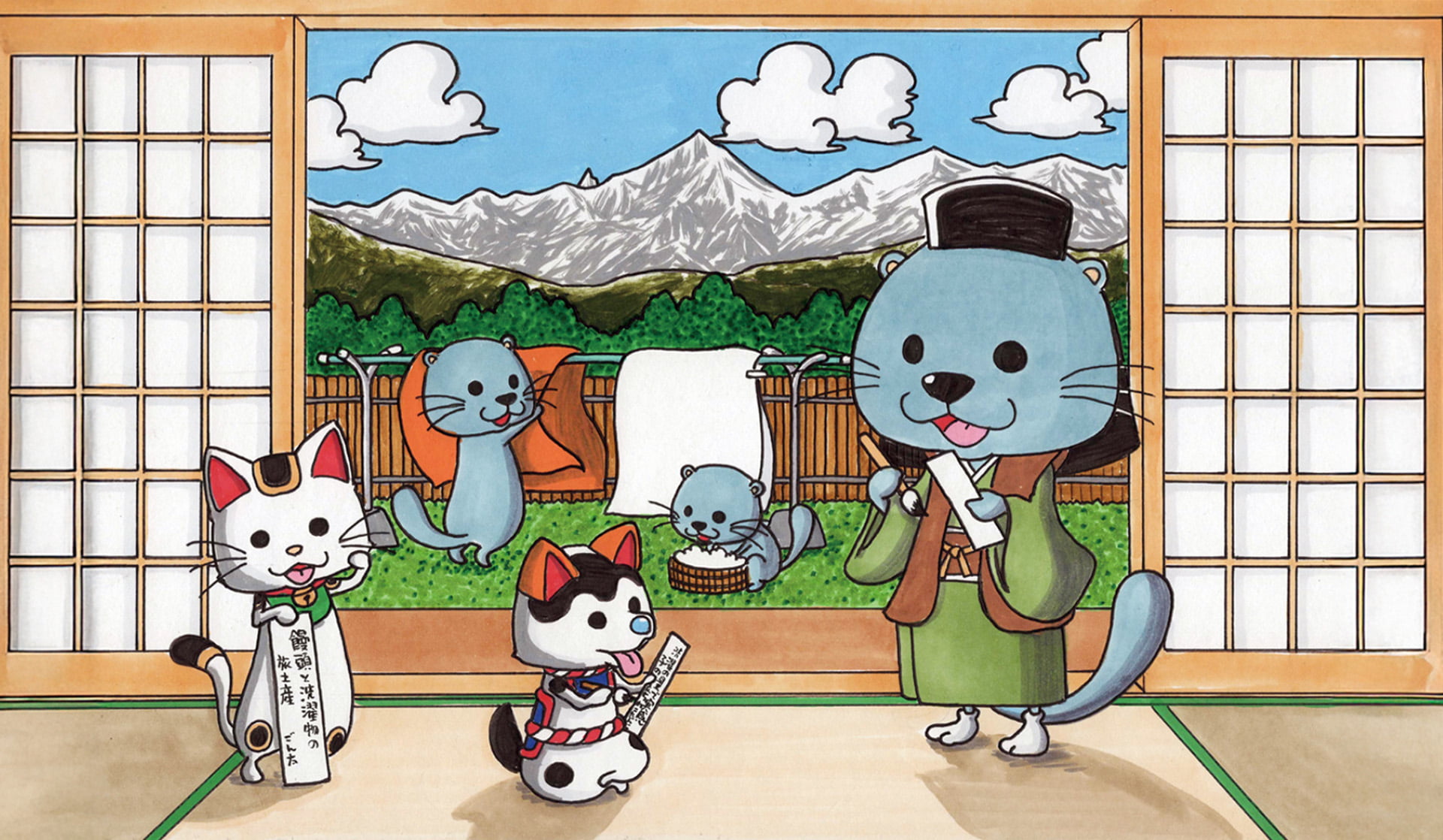 子供番組で絵描き歌を数多く作り現在は、長野県の景色や主に動物を対象にしたエッセイ付きイラストがかわいらしく海外からも人気を得ている。